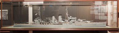 HMS "Exeter", the subject of this model, fought at the Battle of the River Plate. A number of her crew were killed and are buried in Stanley